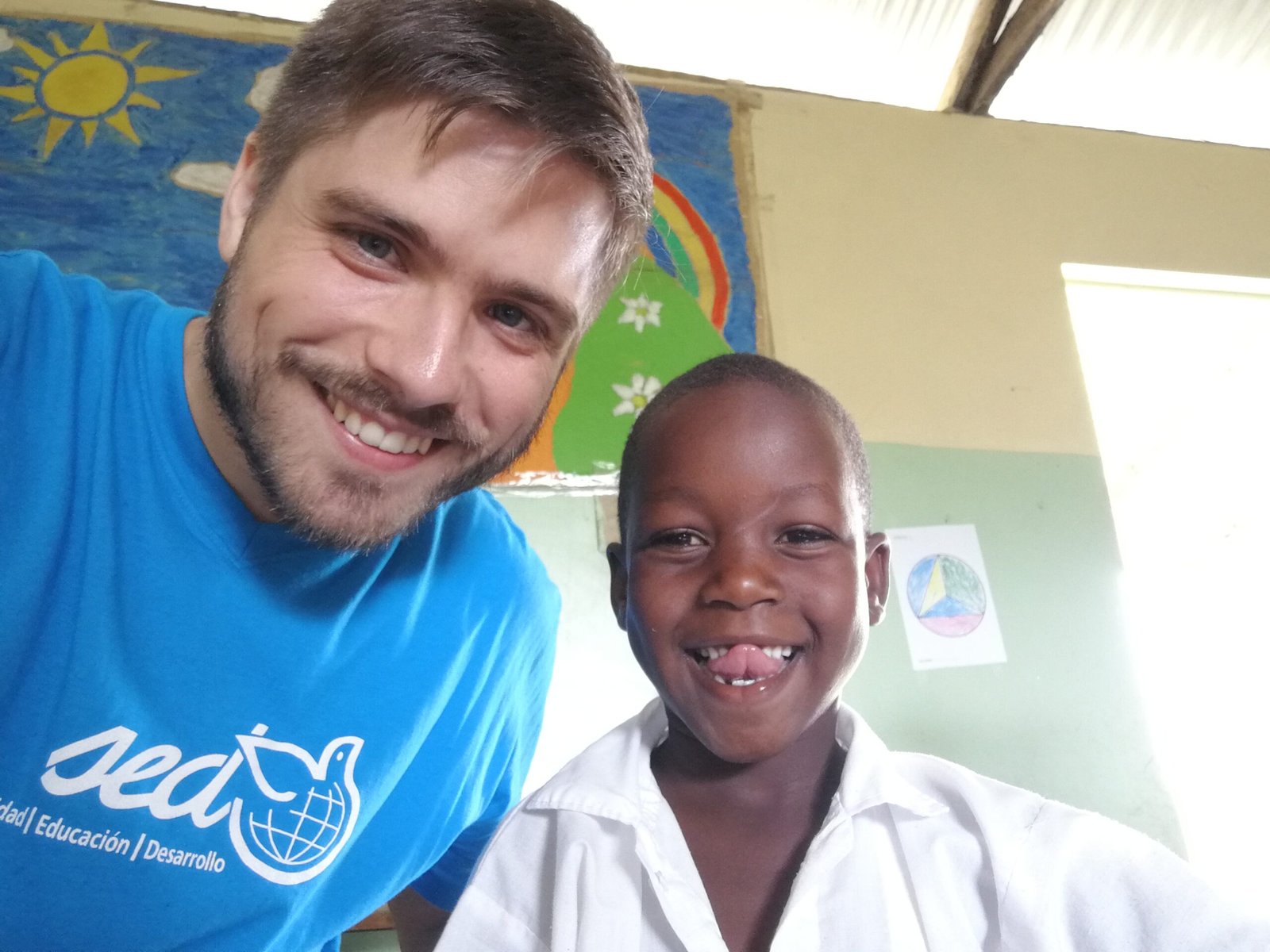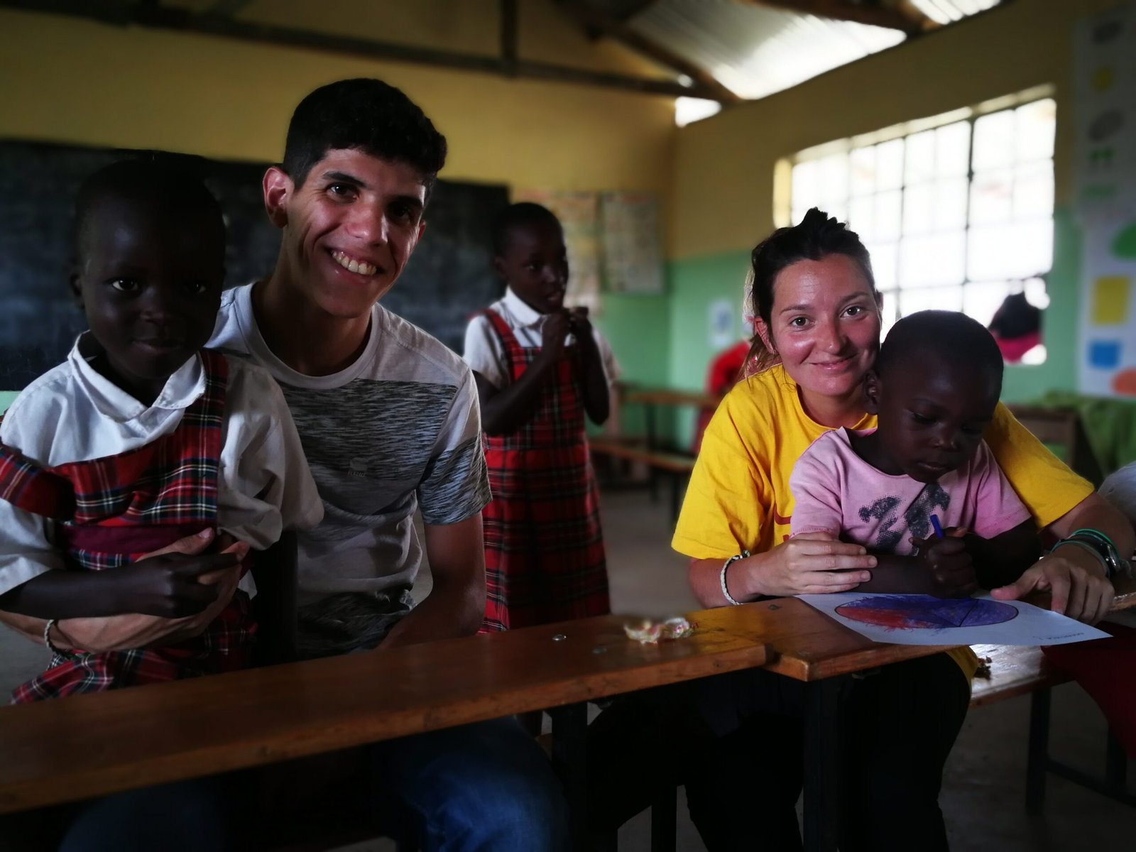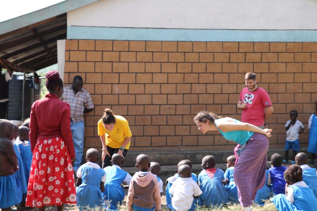 Primero asistimos al despacho del director, donde nos presentamos formalmente y atendemos a sus indicaciones. Después acudimos a las clases donde desarrollamos nuestras actividades, dedicando el primer tiempo de la mañana a los más pequeños puesto que no regresan por la tarde. A continuación, hacemos un parón para comer en el que normalmente conocemos al resto de profesores del colegio mediante una presentación, -que lejos de ser informal-, siempre adquiere cierto tinte solemne y ceremonial (algo que nos llama mucho la atención aquí en África). Ya de regreso a casa y mermados por el cansancio, no podemos dejar de volver a sonreír en la pick-up cuando escuchamos la frase con la que los niños nos saludan desde los caminos día tras día: mzungu, how are you? (Hey blanco, ¿qué tal?).