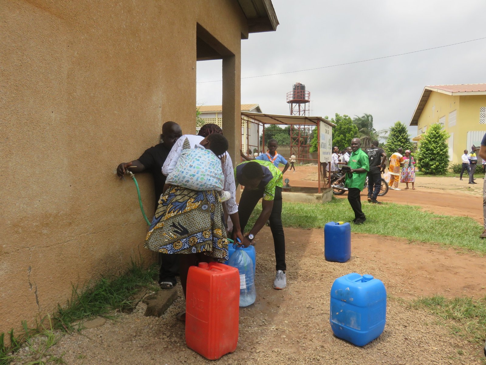 En el entretanto llegaron mamás con sus niños a la espalda y los bidones en la mano, jóvenes con recipientes al hombro, niños y niñas con sus botellas… Es evidente que en la rutina diaria se guarda un tiempo para acudir a la parroquia de Sta Marie de la Zonne para abastecer de agua. Como miembros de SED, ser testigos en directo de la realidad de este proyecto, nos alegra y refuerza nuestra voluntad de estar cerca de los vulnerables y desatendidos de nuestro mundo.